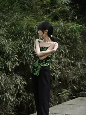 SiON Qingtian xuicici original design classical outer wear chest dark embroidery slim sexy hot girl strapless strap