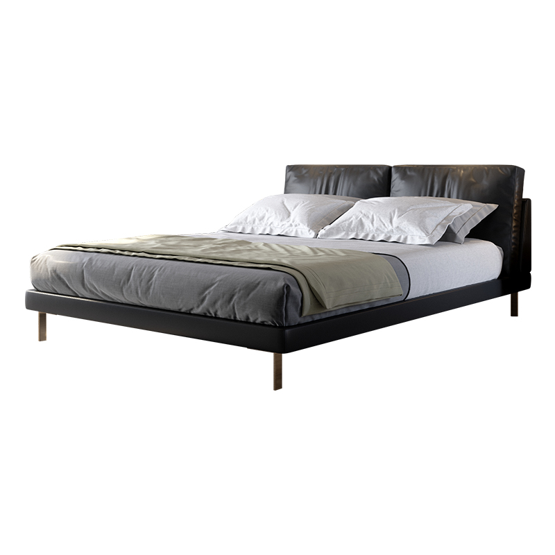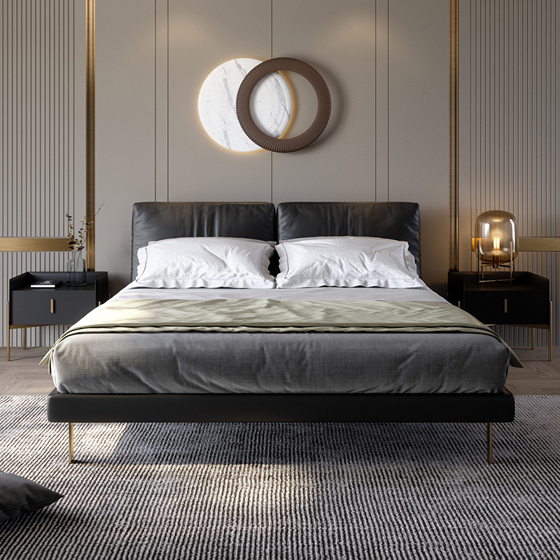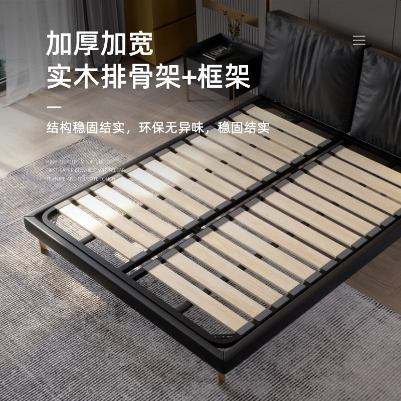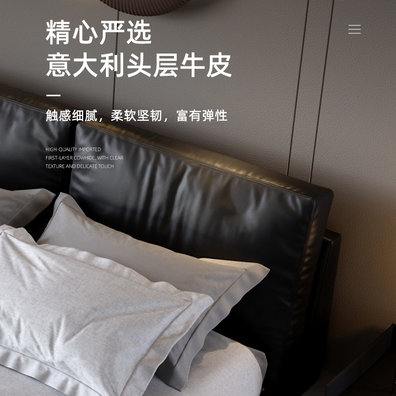 Italian-style light luxury minimalist leather bed Nordic modern minimalist style master bedroom head-layer leather double wedding bed