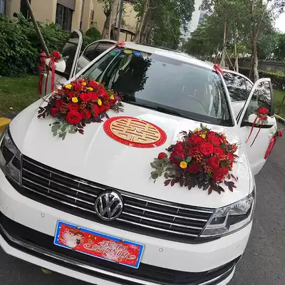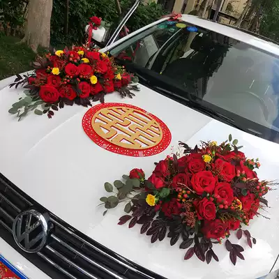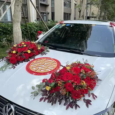 Flower main wedding car decoration car floral headdress full set of real flowers Rose Knot wedding wedding team layout Chinese style Zhuhai