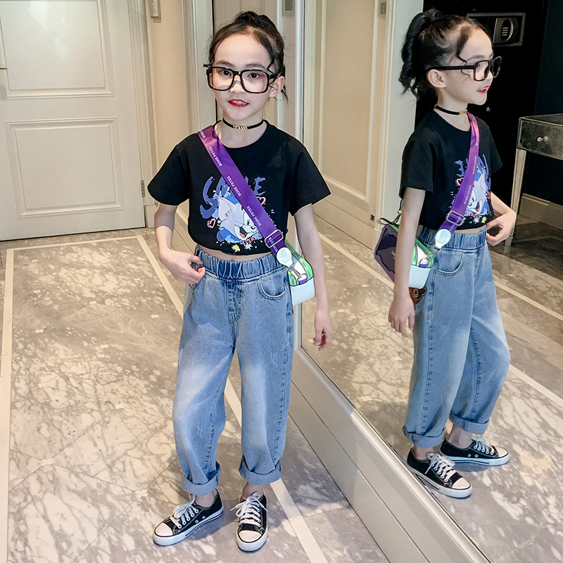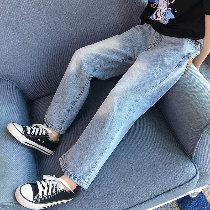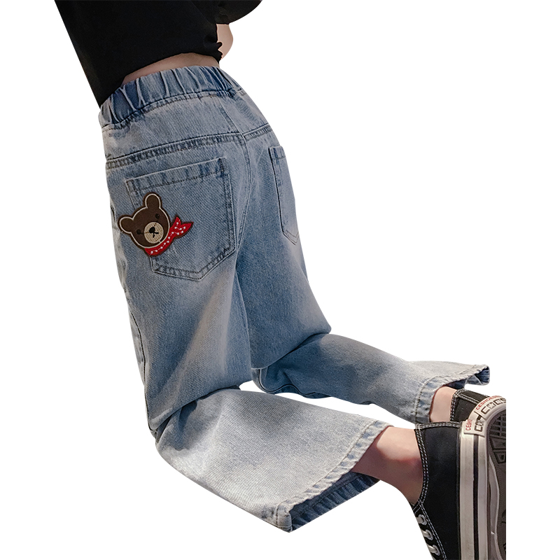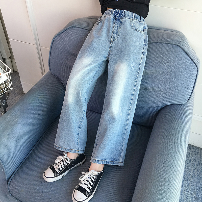 Girls wide leg jeans spring and autumn 2021 New Korean version of foreign style autumn dress Tong Net red loose Tide brand trousers