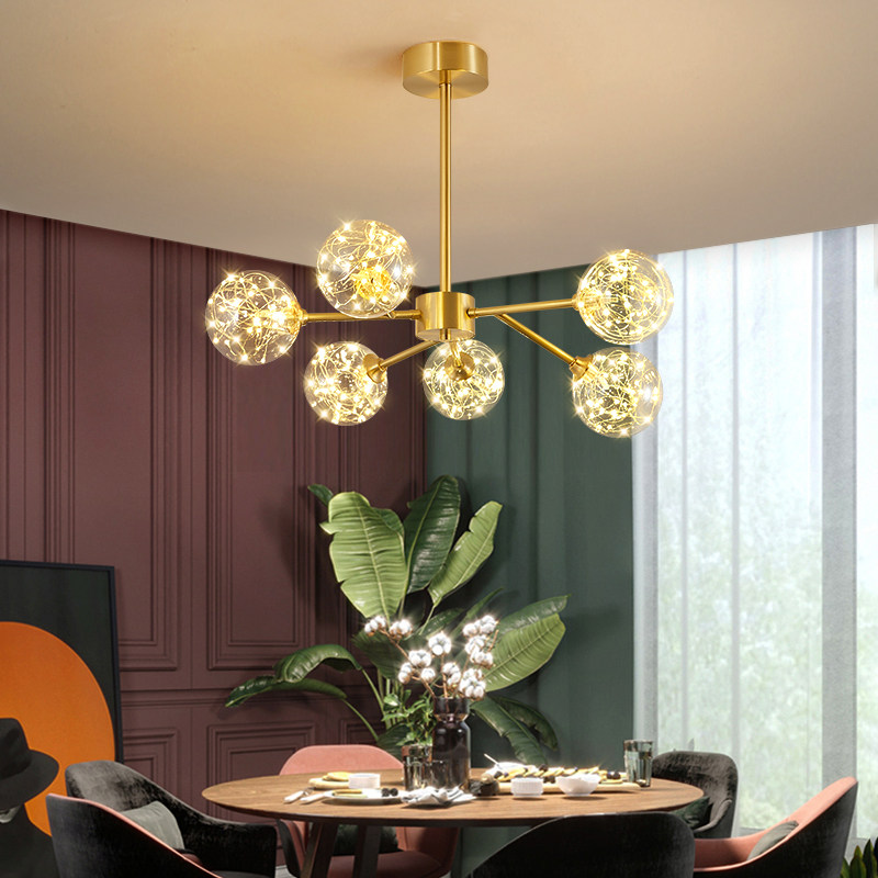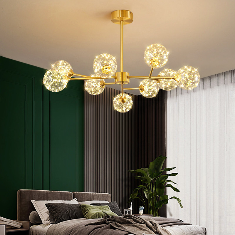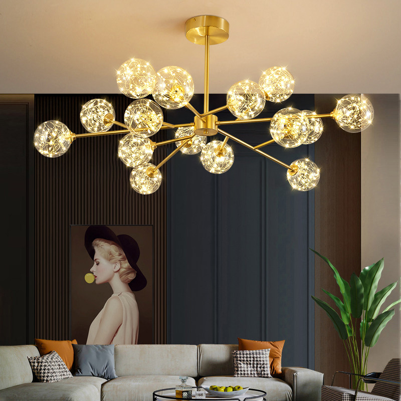 Nordic all-copper light luxury living room chandelier net red magic bean branch molecular lamp full of stars restaurant bedroom children's room