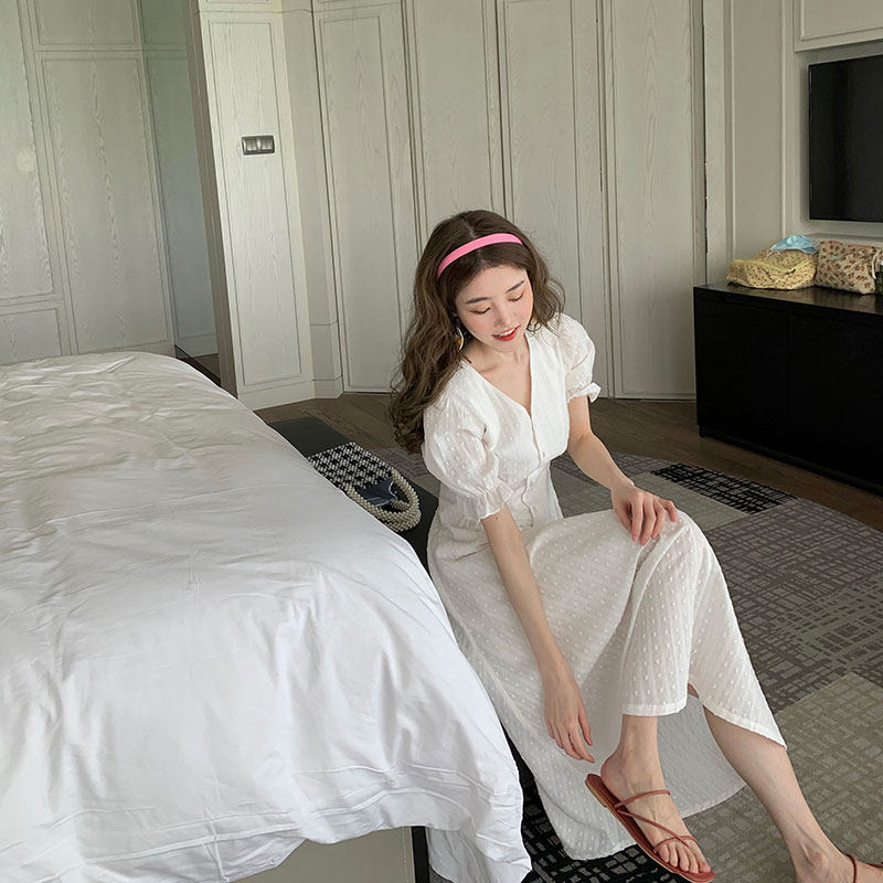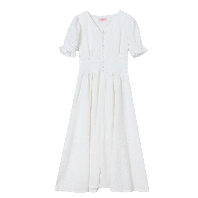 White (harbor taste vintage chic collection waist art senior sense first love tea break pears shape clear pure light cooked sweet and beautiful little sub summer dress mix)