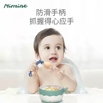 mimine baby learning to eat training spoon children's tableware elbow silicone fork spoon self-eating non-staple food tools