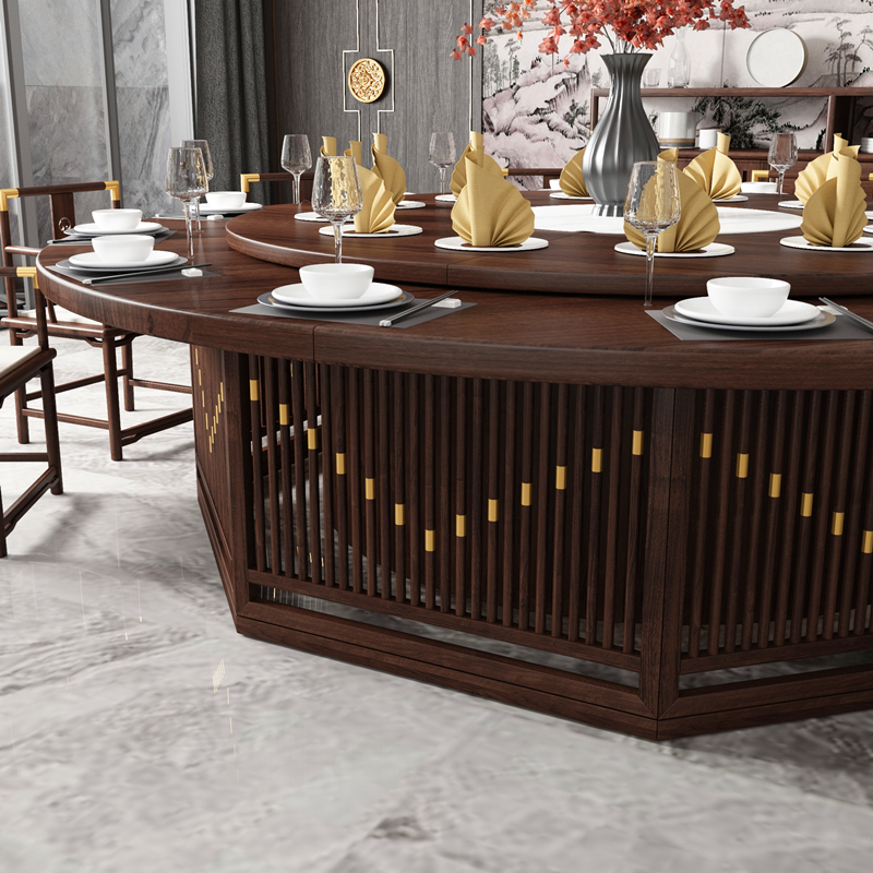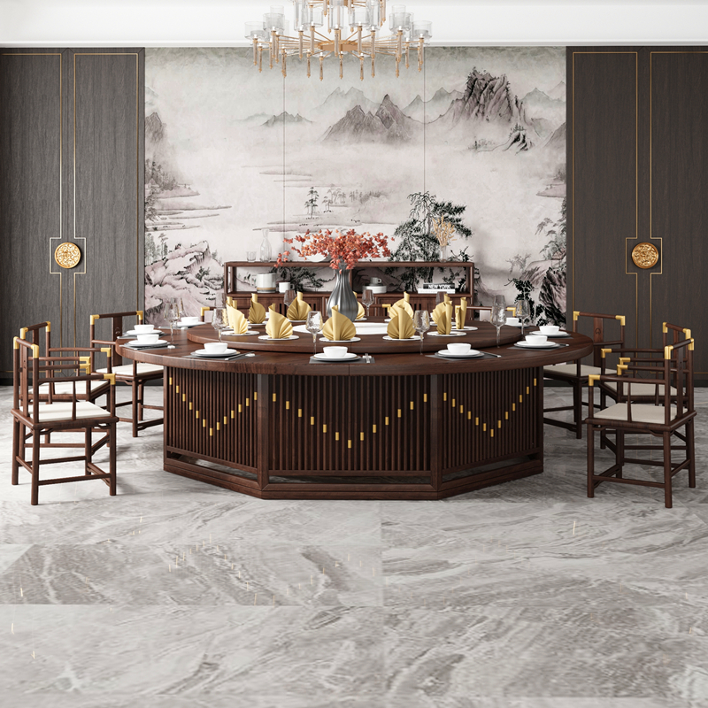 Hotel electric large round table 15 people 20 people hotel solid wood table and chair combination restaurant turntable hot pot table large round table