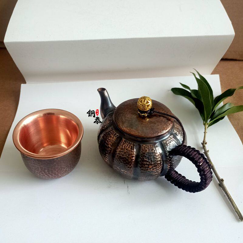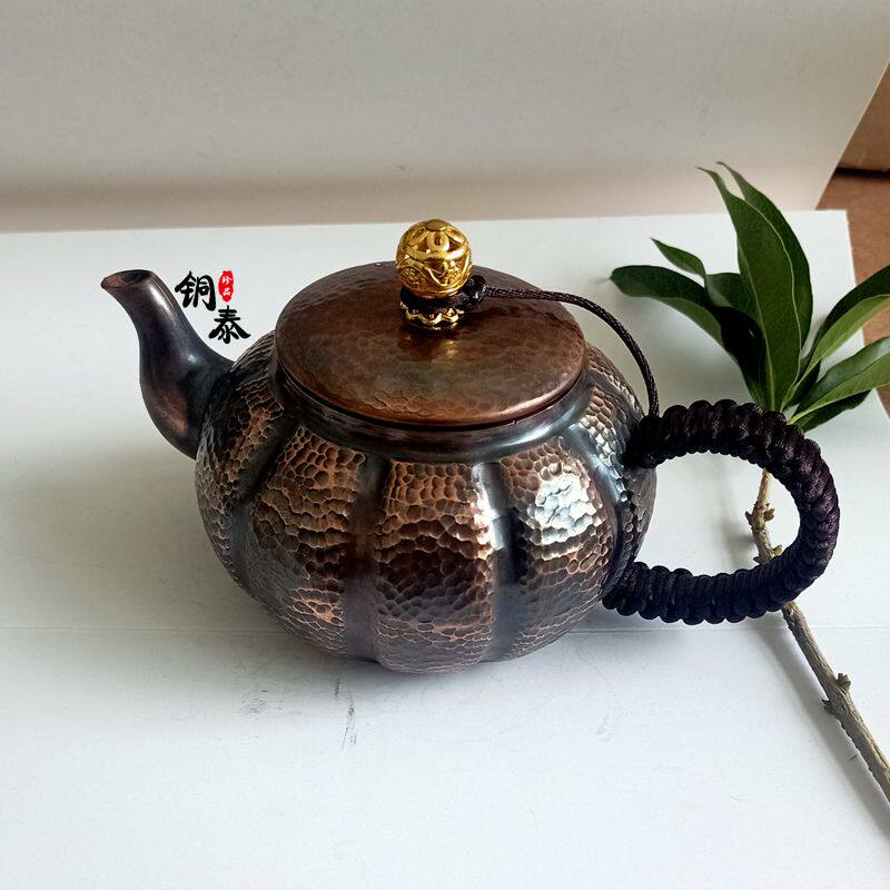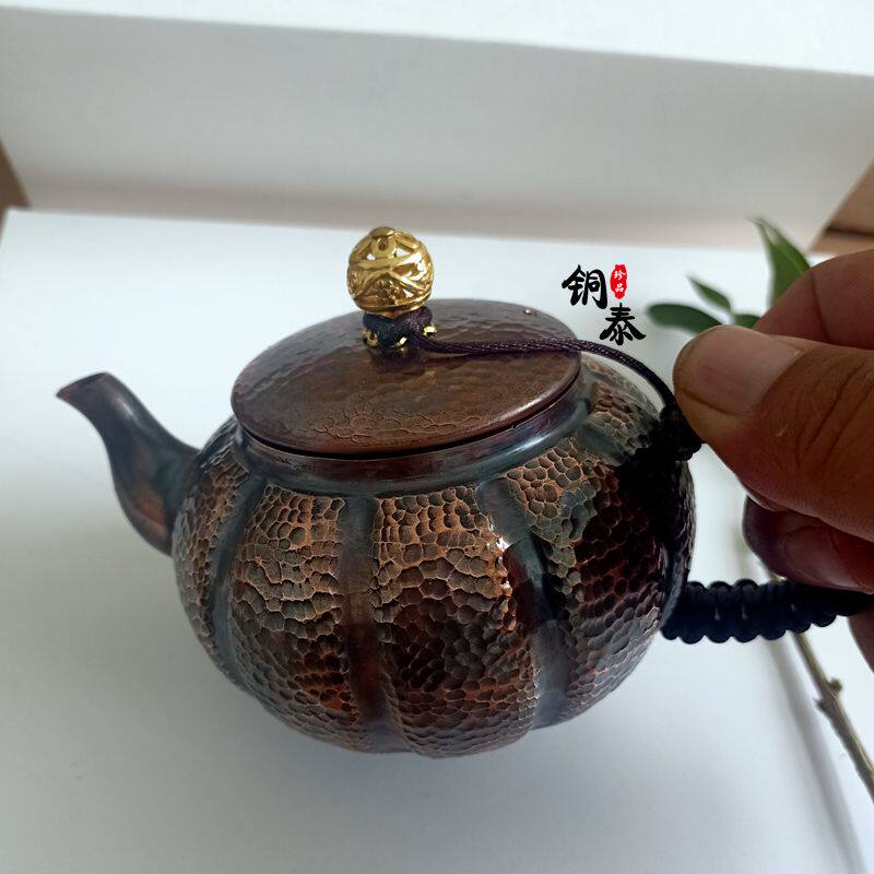 Pumpkin pot Red copper hand-made antique pot Copper pot tea small copper pot Kung Fu small teapot red copper