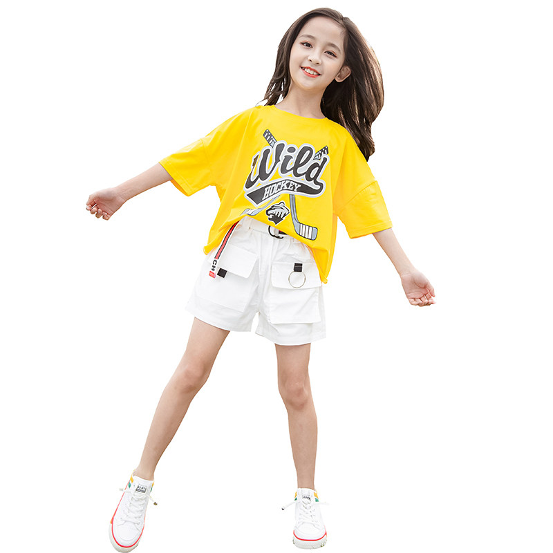 Girls short-sleeved T-shirt tooling short two-piece suit big boy 170 summer new little girl casual Western style loose