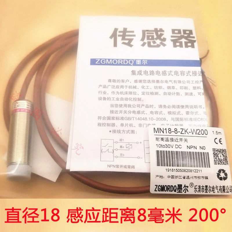 High temperature resistant proximity switch 200° M18 DC three-wire 24V NPN normally open sensor low temperature 40° waterproof