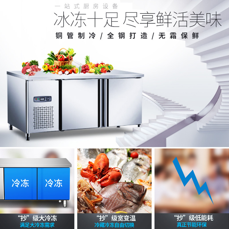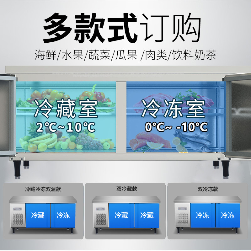 Refrigerated bench Ice cabinet Commercial fridge milk tea Operating table Frozen Refrigerated Cabinet Kitchen Refreshing horizontal flat freezer