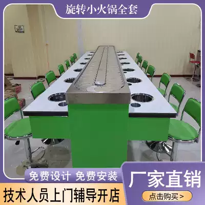 Rotating small hot pot equipment Full set of commercial buffet tables Shabu-shabu and grilled one Malatang single single pot rotating hot pot
