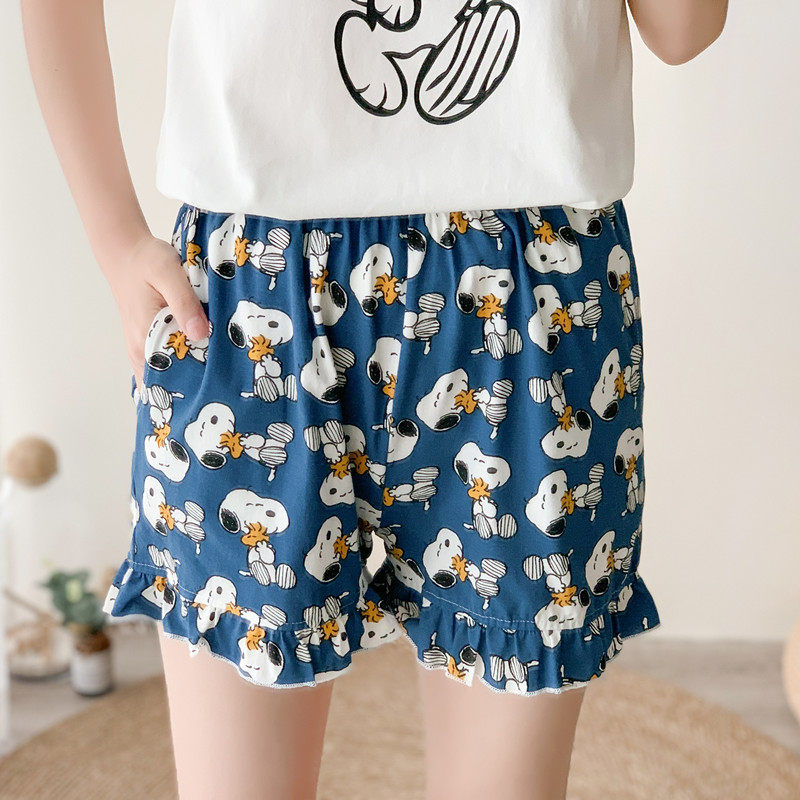 Short-sleeved pure cotton pajamas women's summer round neck cute cartoon Snoopy students can wear home clothes suits
