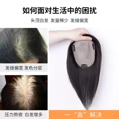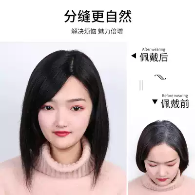 Oblique bangs wig film head top hair patch to increase hair volume to cover the white hair on the top of the head, real hair, thin cover to cover the fake bangs, female nature