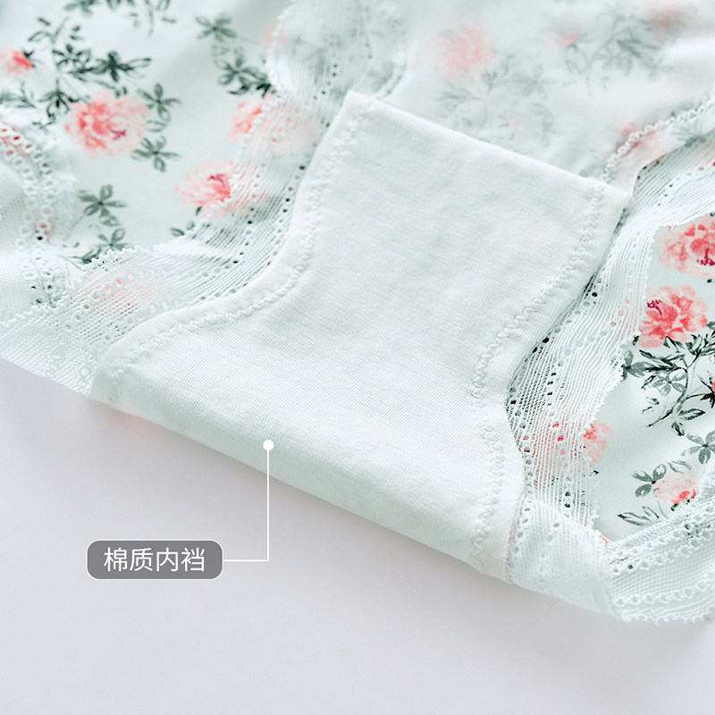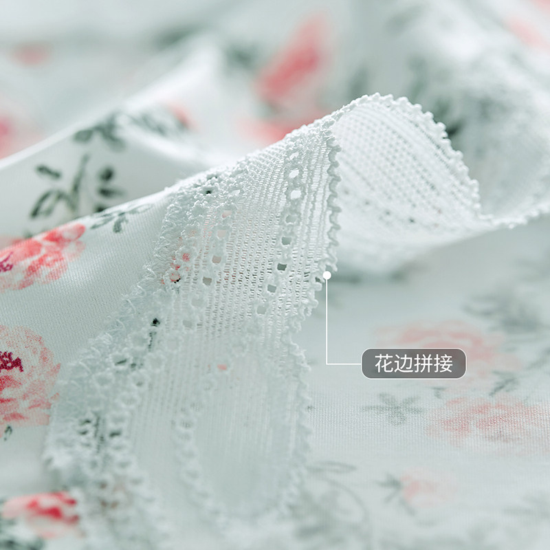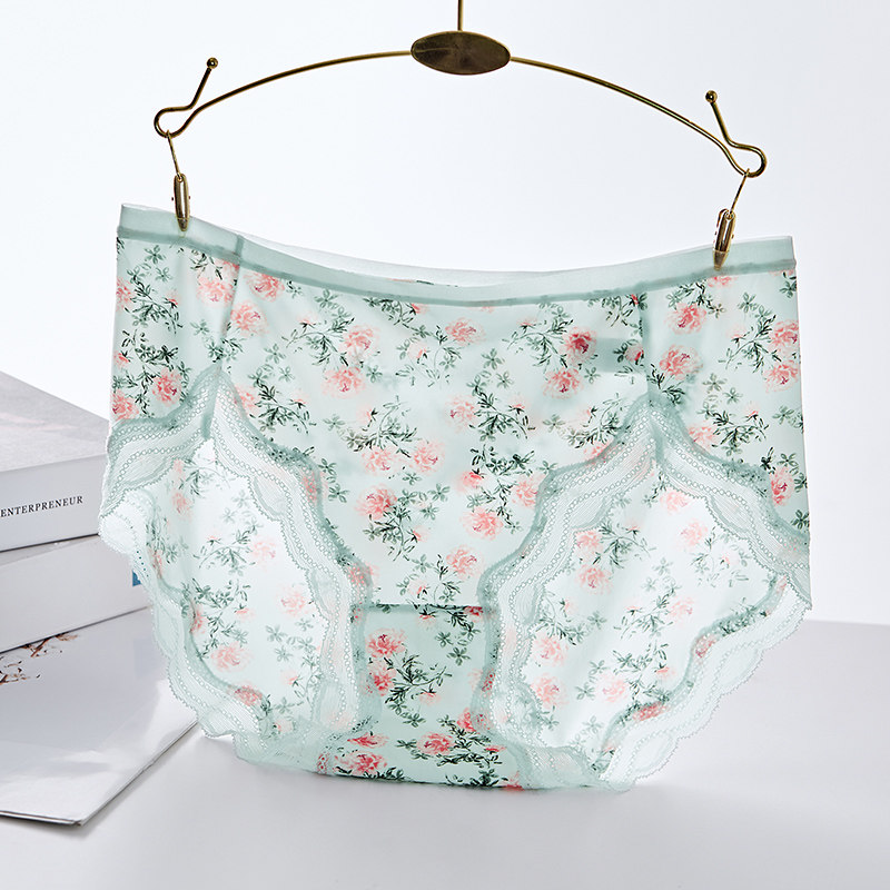 MSShe big size 2022 new sweet and comfortable medium-high waist floral side crushed flower triangle cool and elastic ice silk underpants