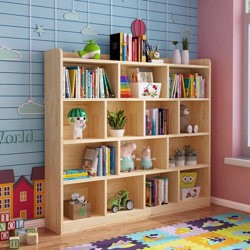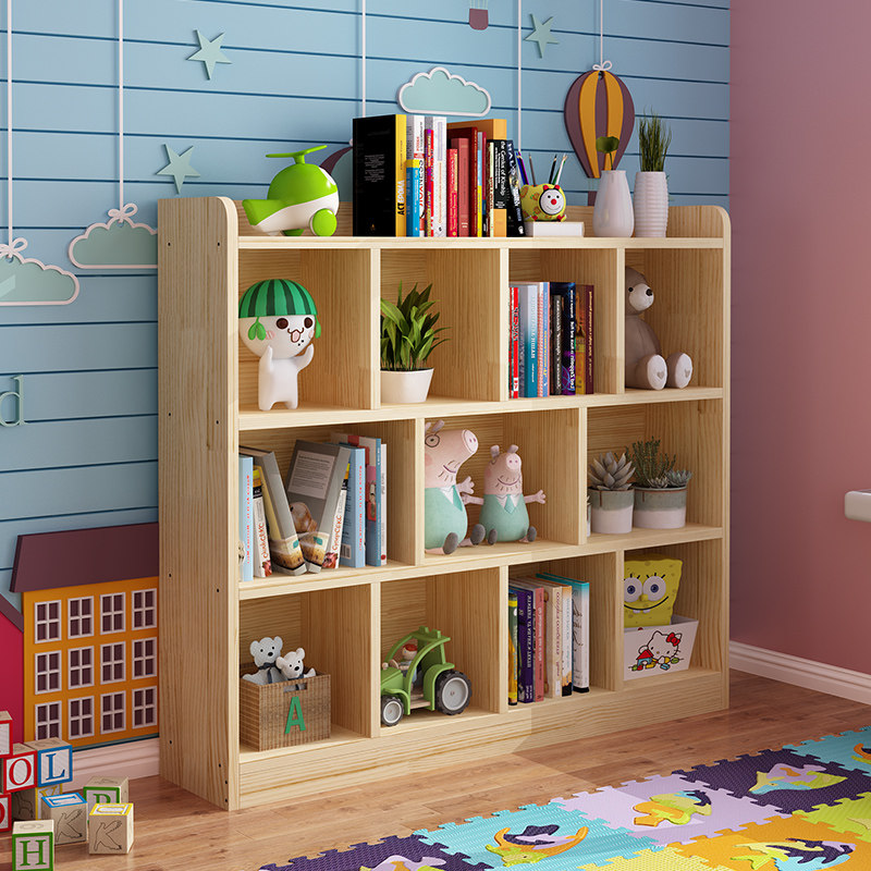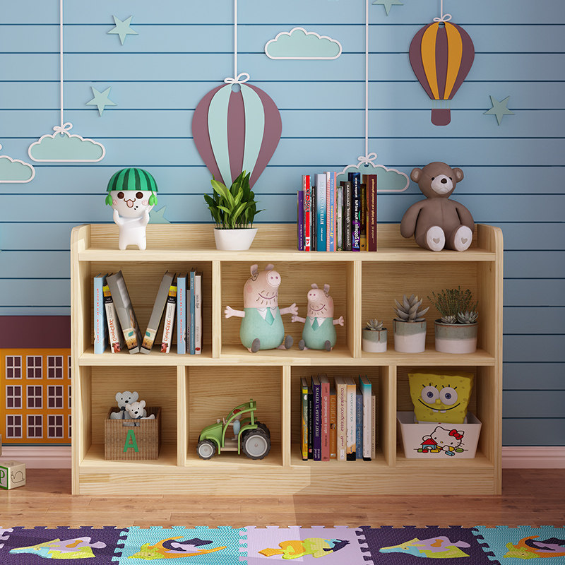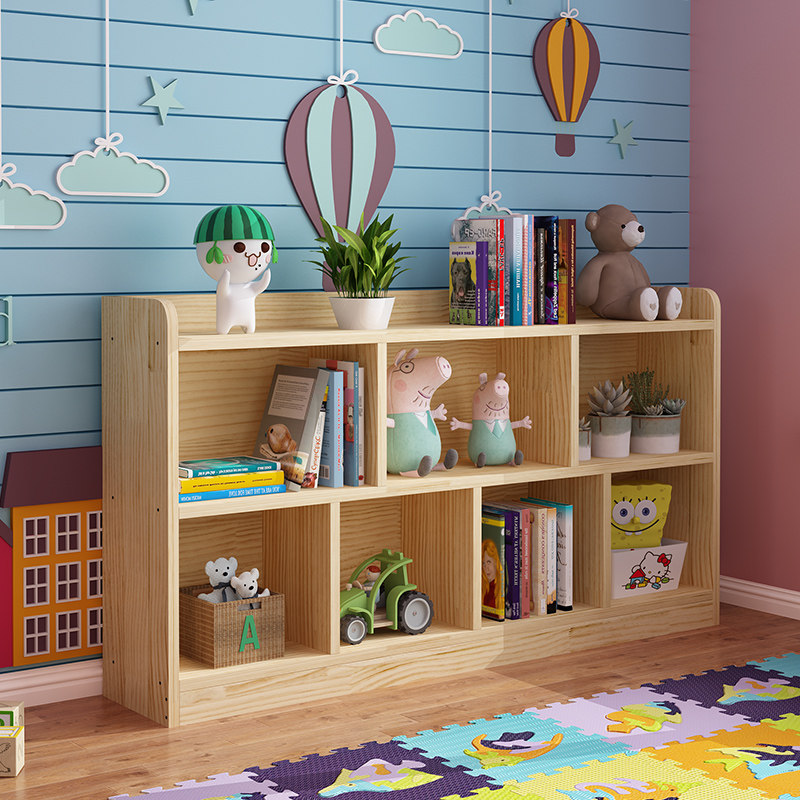 Solid Wood Children Bookshelves Landing Shelve Nursery Kindergarten Short Bookcase Students Simple Living Room Shelfs Pine Wood Custom-Taobao