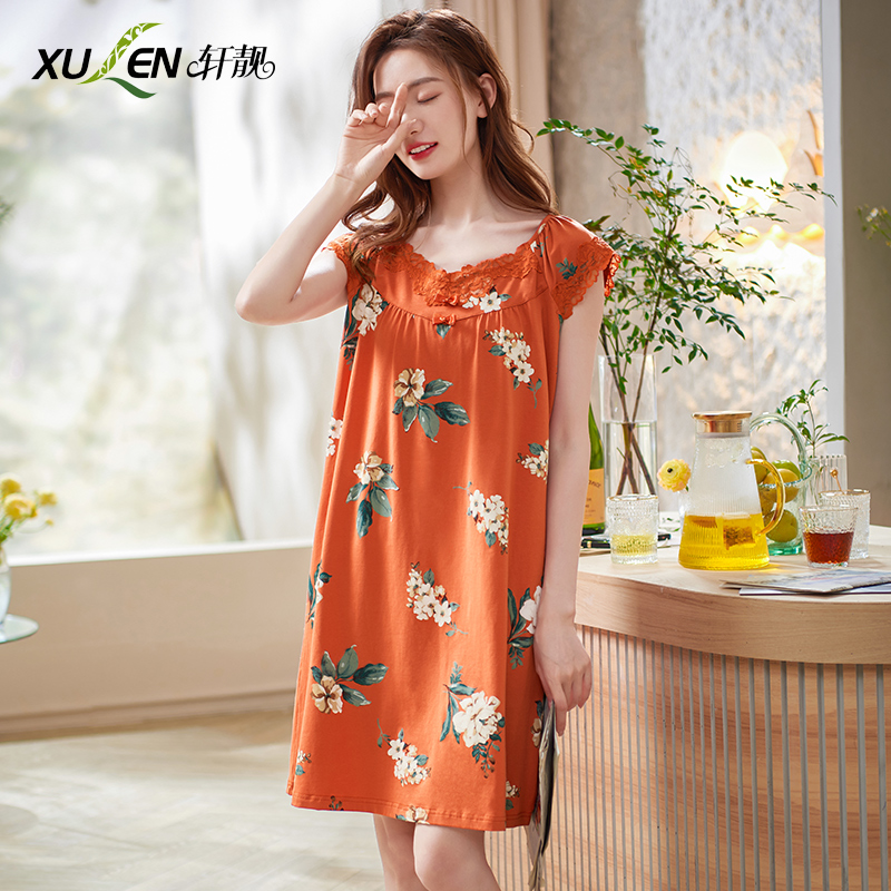 Mom Sleeping Dress Lady Summer Thin cotton pyjamas sleeveless sleeveless jacket Skirt Casual Home Dress Lady Foreign Dress