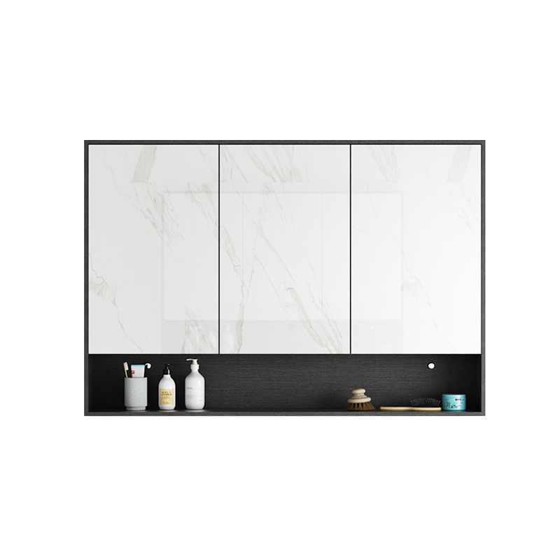 100CM black solid wood semi-enclosed mirror cabinet