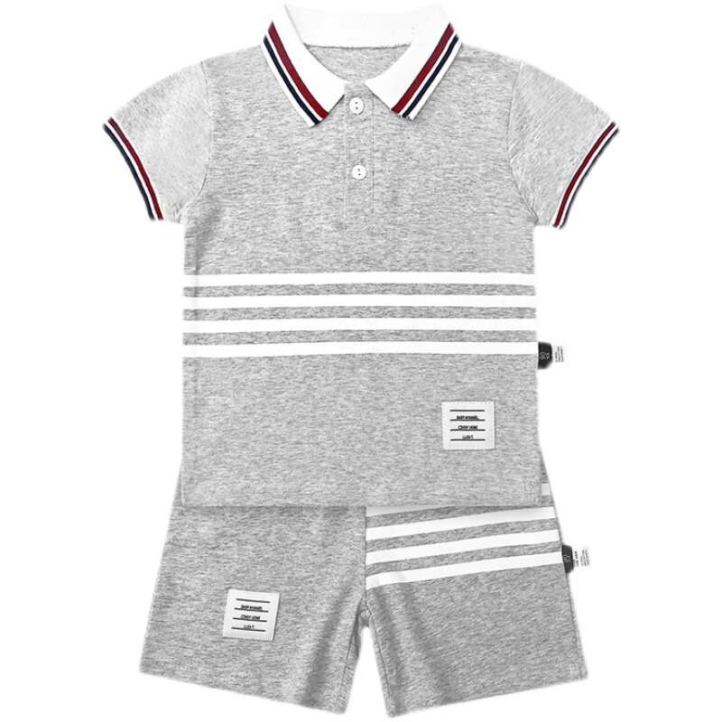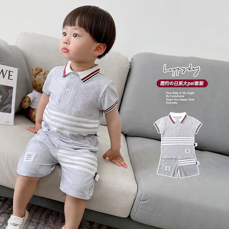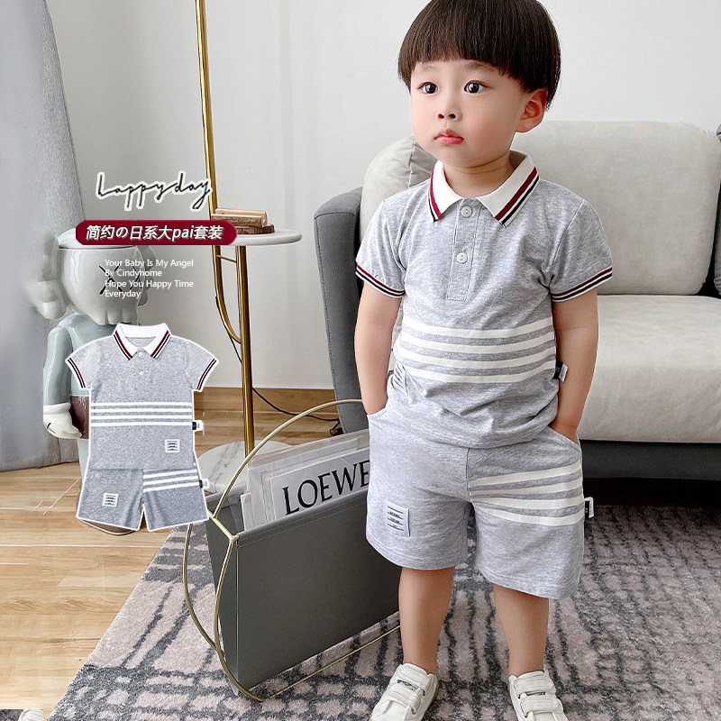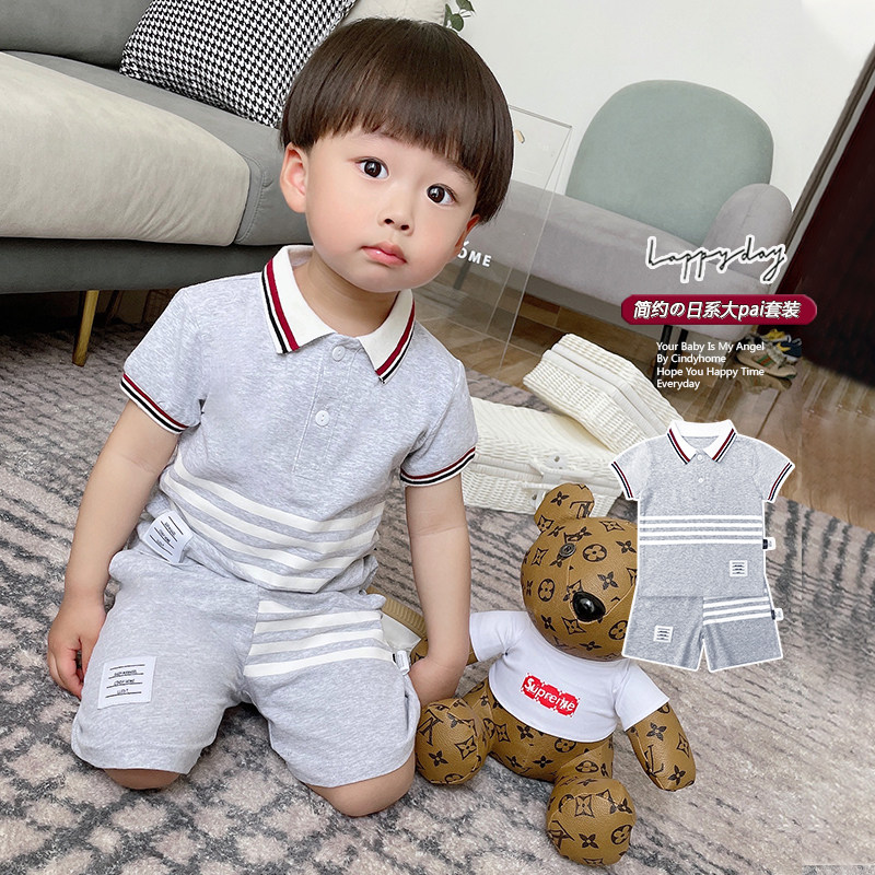 Summer middle and small children English pure cotton short sleeve suit boybaby leisure gentleman Yang summer dress children to overturn clothes
