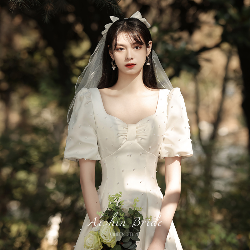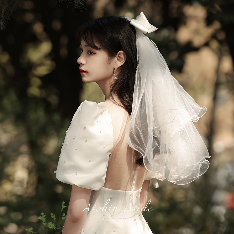 Veil 2021 new headdress bride main wedding photo props certificate wedding French white bow forest department