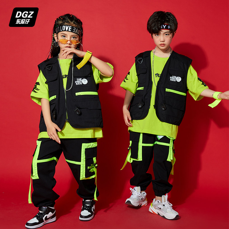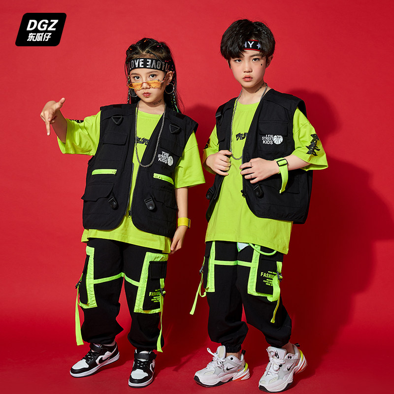 Children's hip-hop suits boys' trendy clothes hip-hop summer children's hiphop children's clothing girls' jazz dance costumes trendy