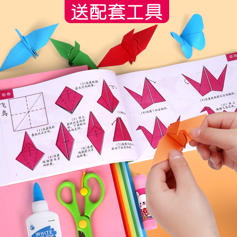 Origami paper color photocopy paper a variety of color set square paper airplane wedding Thousand Paper Crane kindergarten handmade materials a4 children Primary School students paper-cut soft tutorial book book