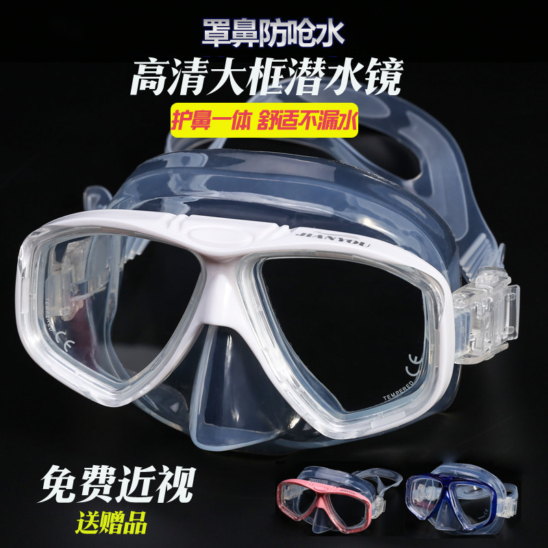 Diving mirror myopia swimming glasses high-definition large frame guard and nose integrated swimming glasses anti-choking water men and women swimming glasses equipment
