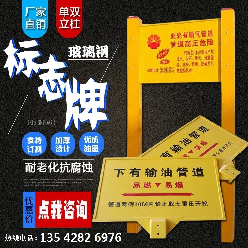 Fiberglass warning sign power cable gas buried gas defense oil pipeline danger sign sign
