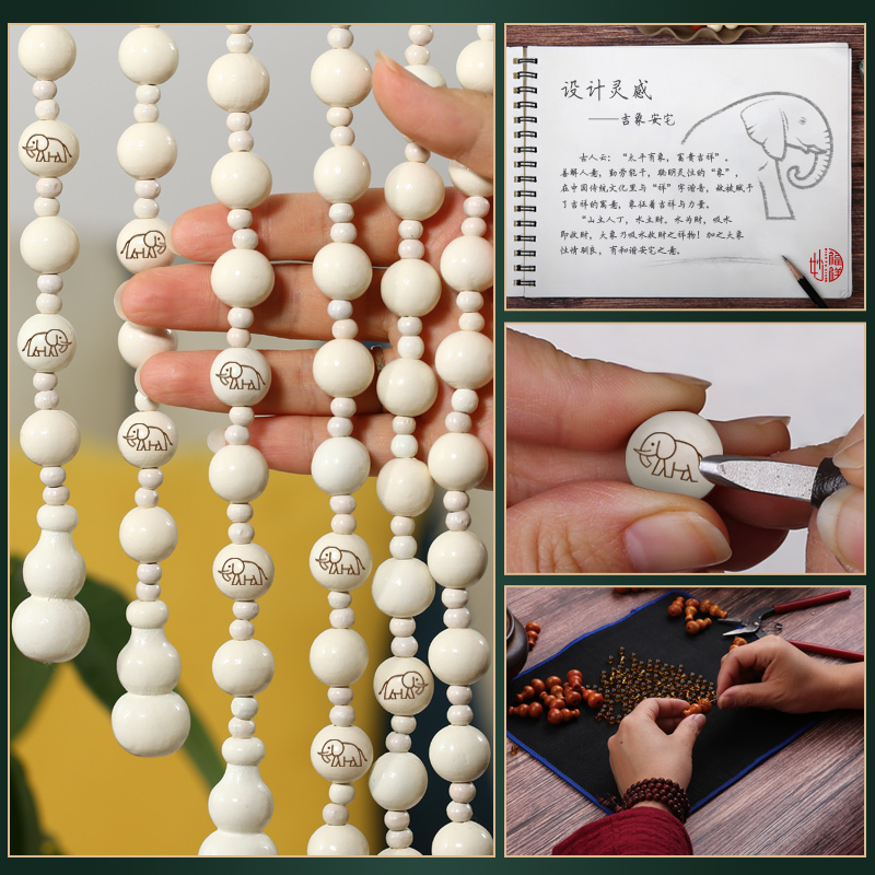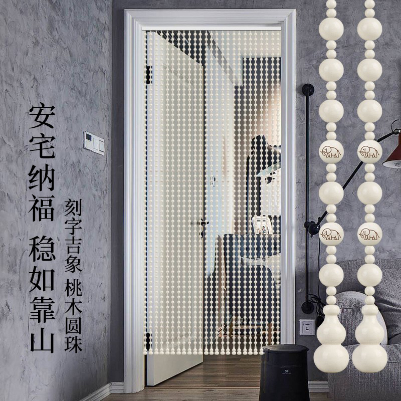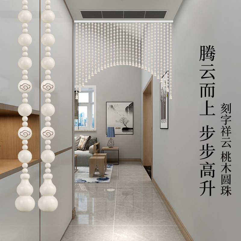 White peach wood hand-engraved auspicious bead curtain