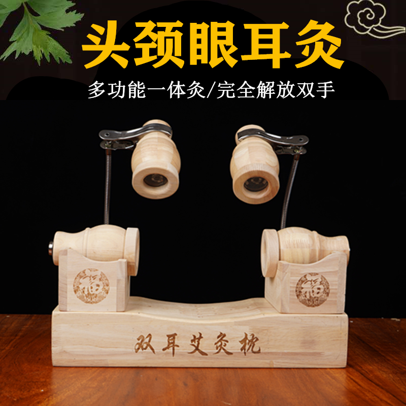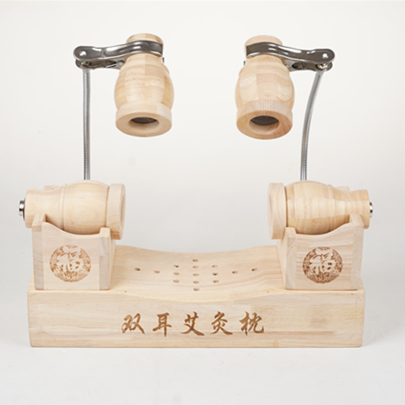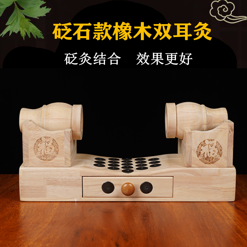 Oak Wood Subsection Double Ear Moxibustion Box Oak Stone Needle With Double Ear Moxibustion Box Oak Head And Neck Eye-ear Multifunction Moxibustion Box