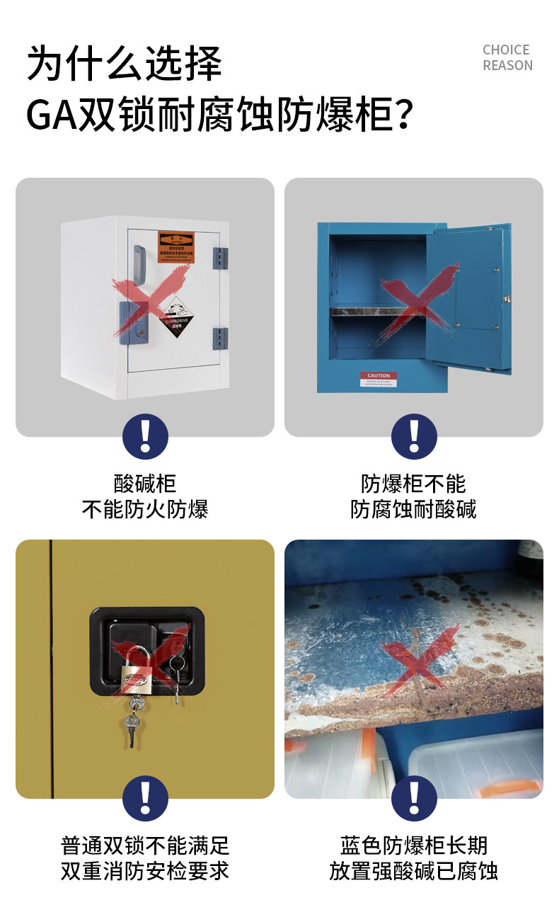 Corrosion and explosion protection cabinet GA mechanical double double lock easy to blast safety cabinet pp lined with critical stock reagent storage cabinet