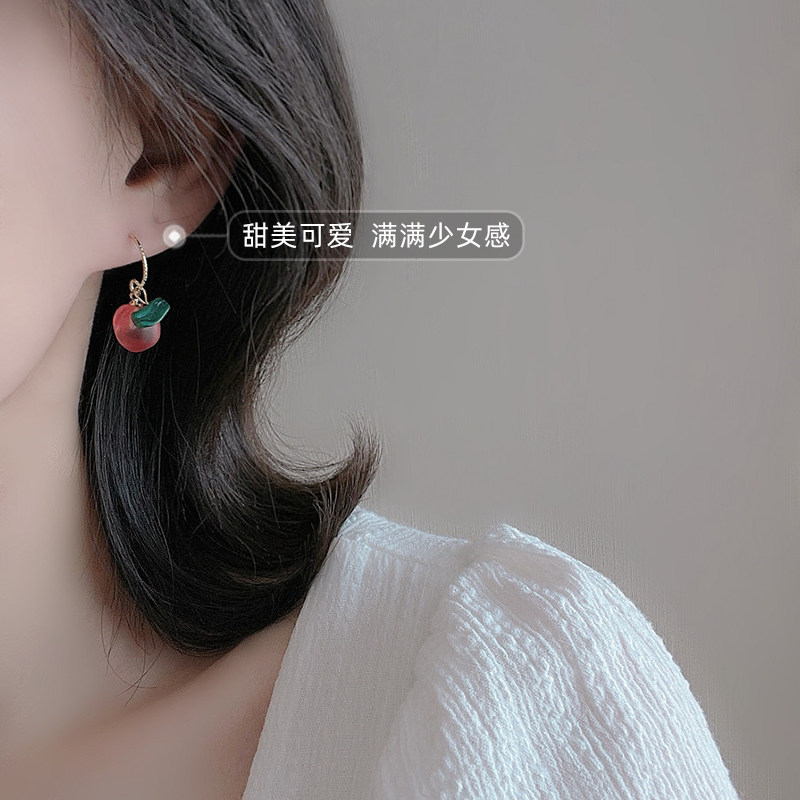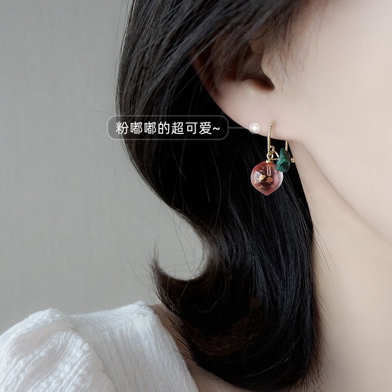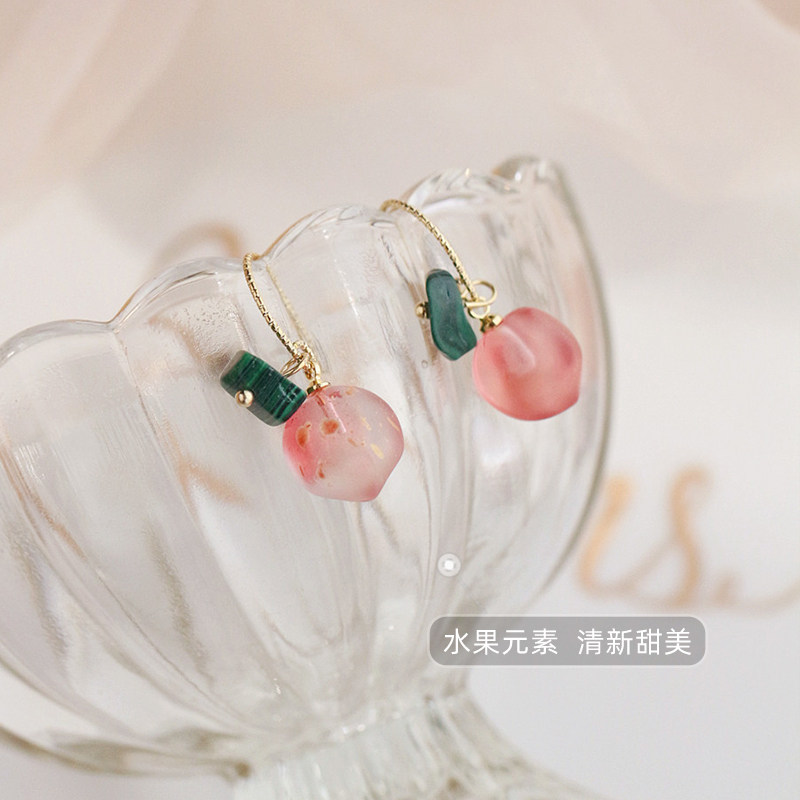 Cute pink cherry ear pin plated 14K gold earrings fruit girl heart earrings female 2022 new ins tide