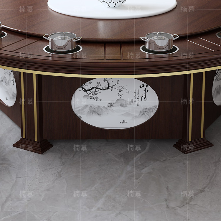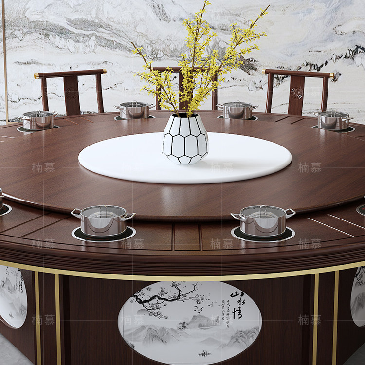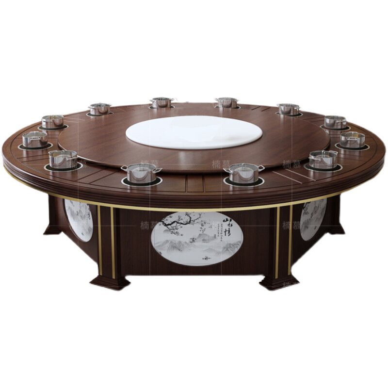 Electric dining table big round table New Chinese automatic rotary solid wood turntable smoke-free hot pot table induction cooktop