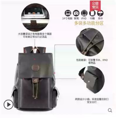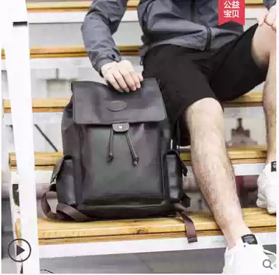 Hong Kong leather men's backpack casual shoulder bag fashion trend Middle School School bag large capacity Travel Bag Men's bag