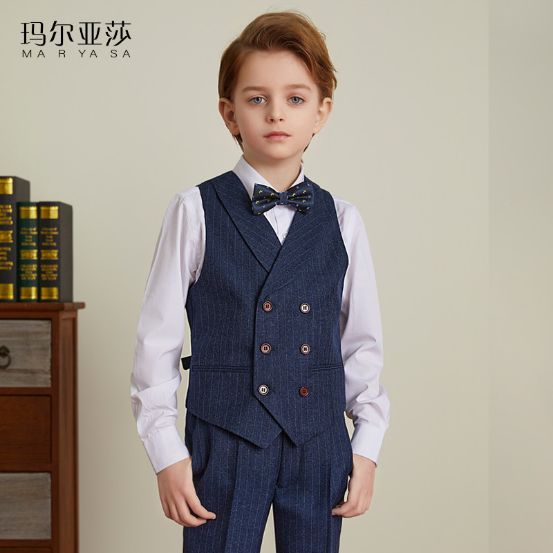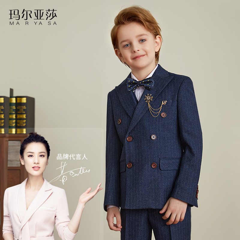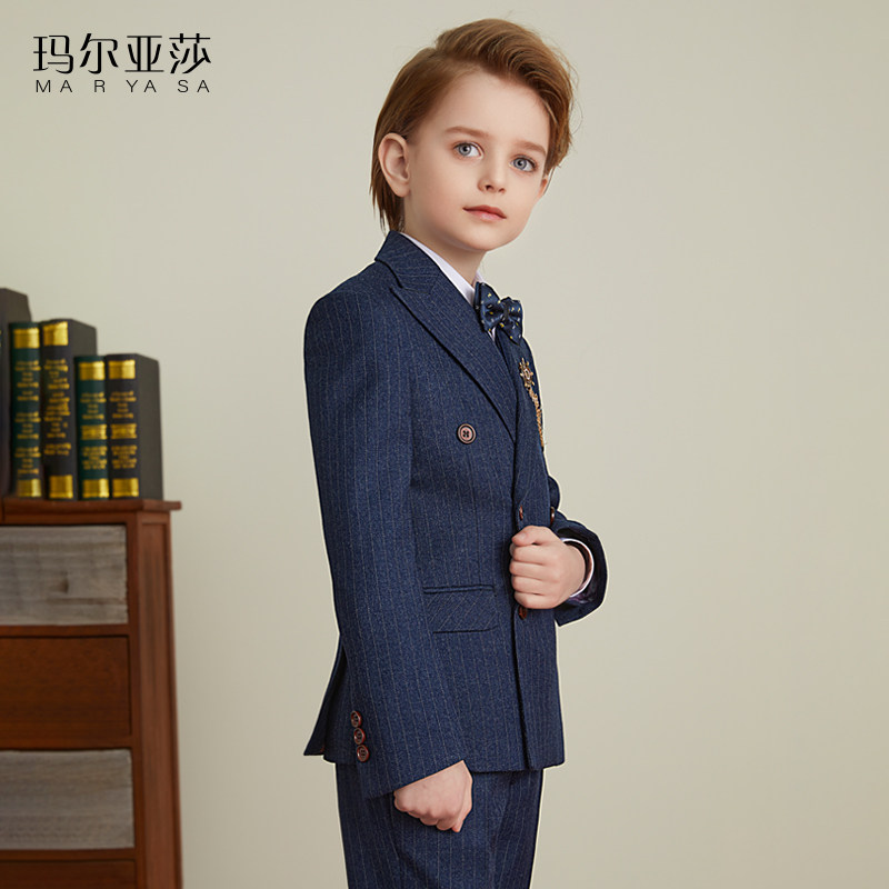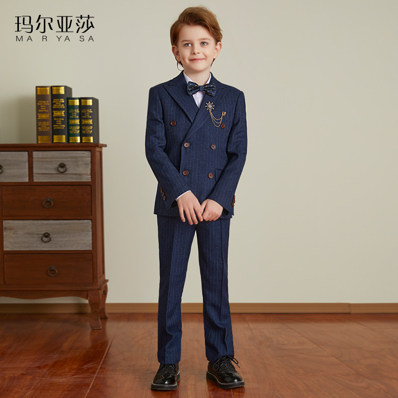 New children's dress suit boys suit double breasted small host costume striped handsome British suit