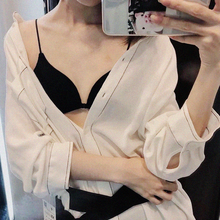 Sexy French back underwear front buckle without steel ring invisible thin sling bra ultra-thin triangle cup backless bra women