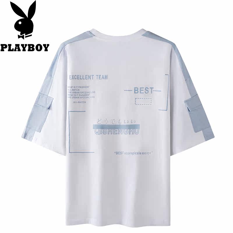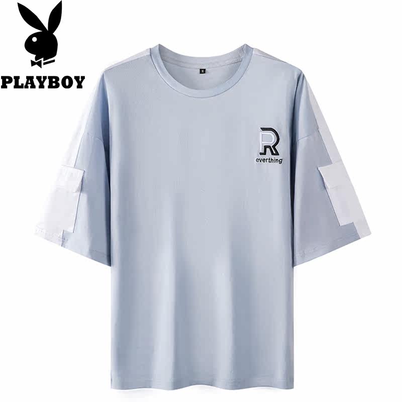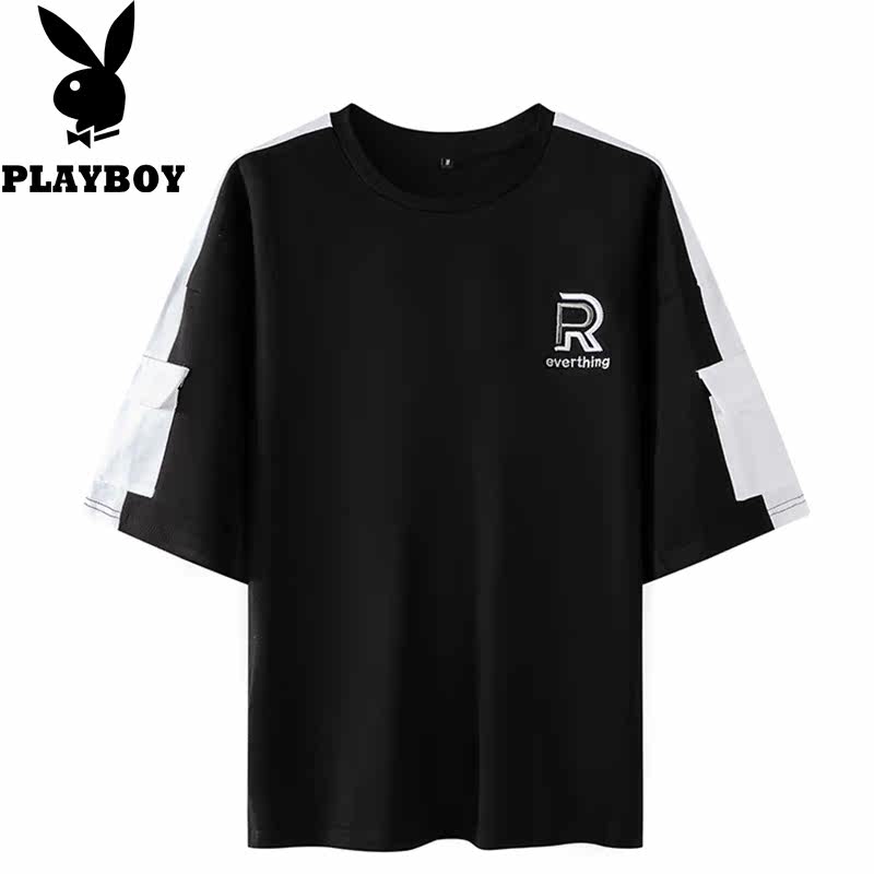Playboy summer tide brand men's T-shirt 2021 new youth loose letter embroidered all-match half-sleeve top