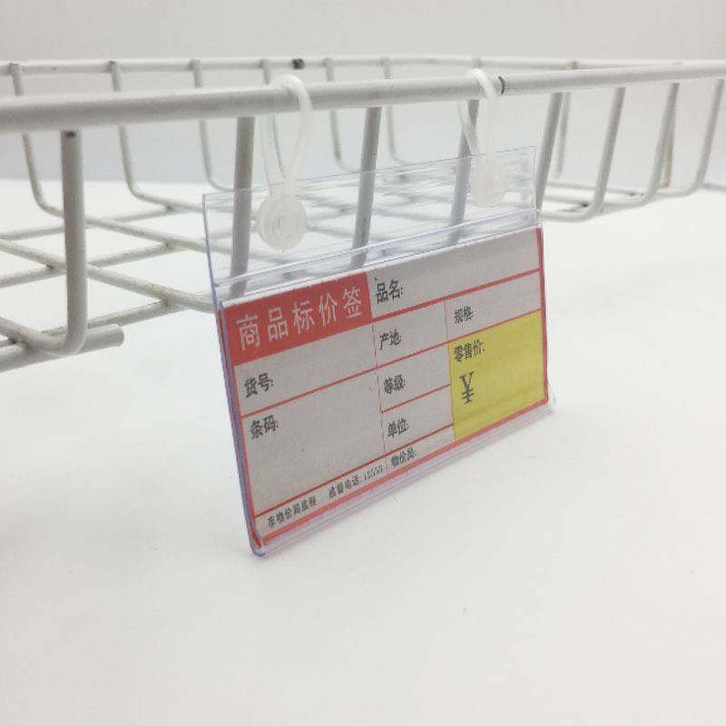 Supermarket Pvc Price Tag Transparent Channel Promotion Card Pop Hanging price tag Inclined Lip Cage Mesh Basket Shelving Plastic Buckle