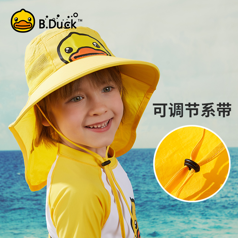 B Duck small yellow duck children swimming sun-shading sunscreen hat male and female baby big peak fisherman's hat beach out for summer