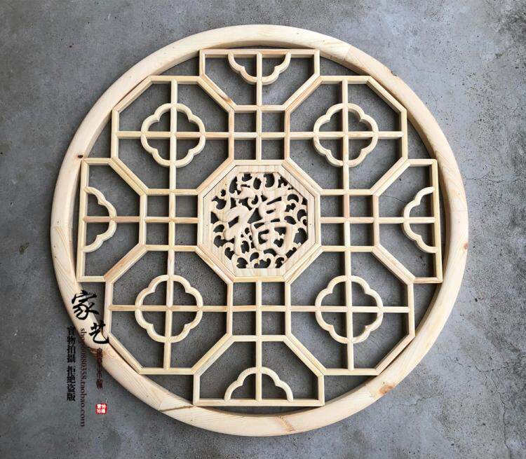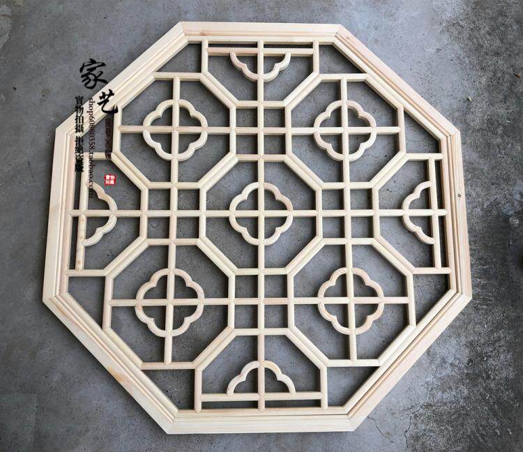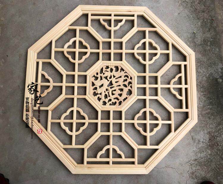Dongyang wood carving antique solid wood pendant Chinese decoration Begonia lampshade suspended ceiling octagonal round flower window lattice custom