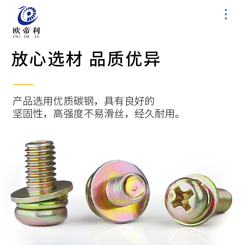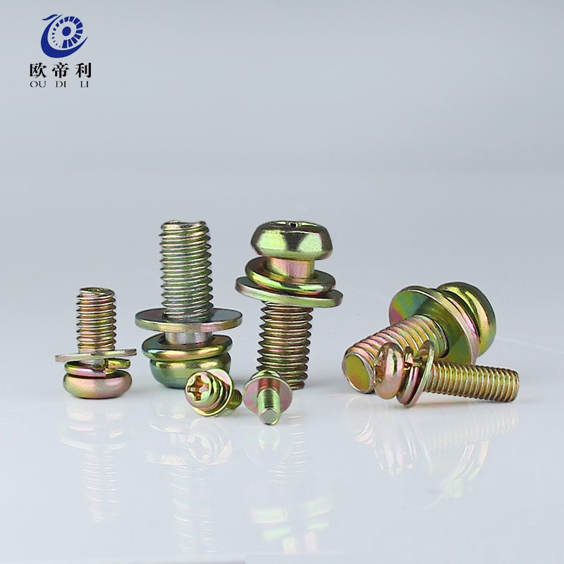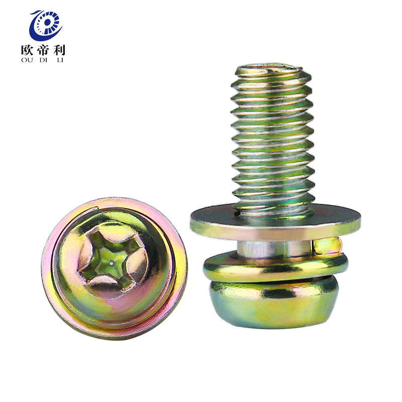 Color zinc cross round pan head three-combination screw three-in-one with flat elastic gasket M3M4M5M6M8