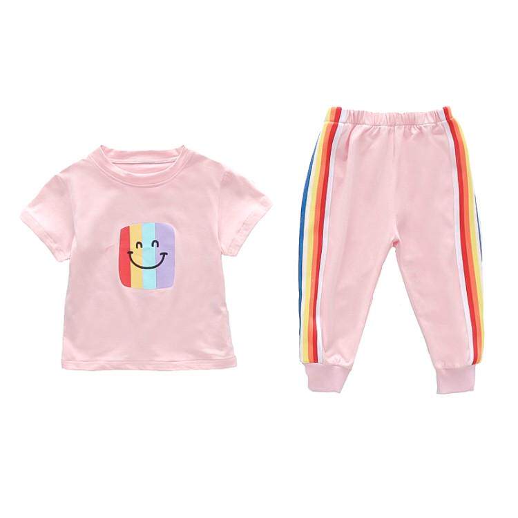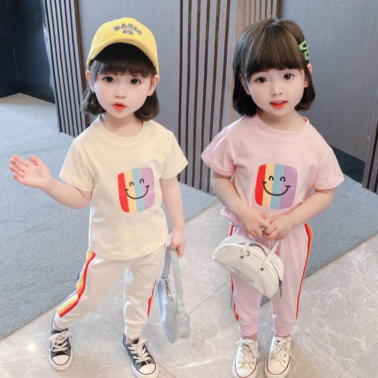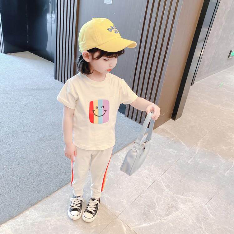 2021 new girls summer suits children's T-shirt cotton short-sleeved printed baby suits for girls