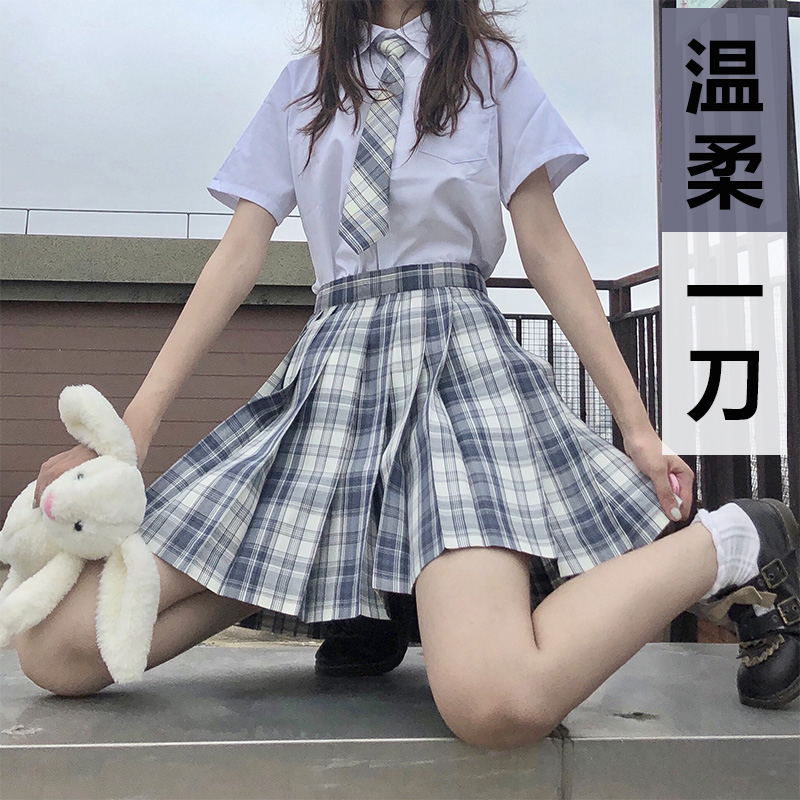 Original jk uniform dress genuine rabbit seam academy wind set full set of medium-card skirt female summer fold dress suit