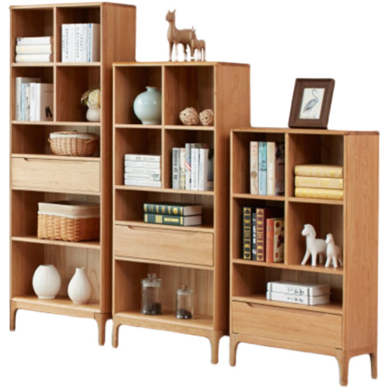 Japanese-style oak bookshelf solid wood bookcase simple floor Nordic open combination bookcase shelf log color