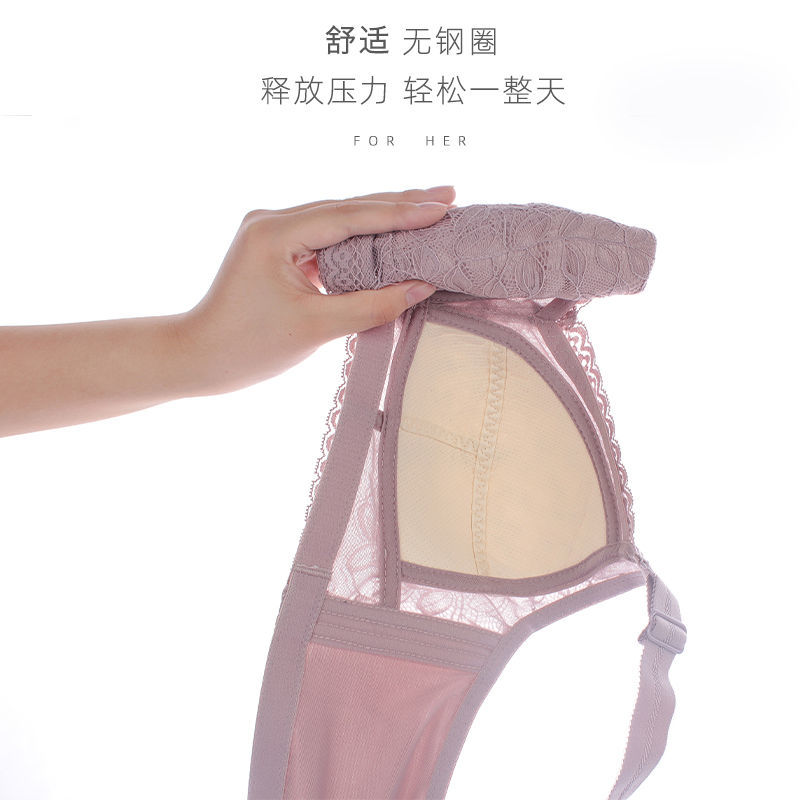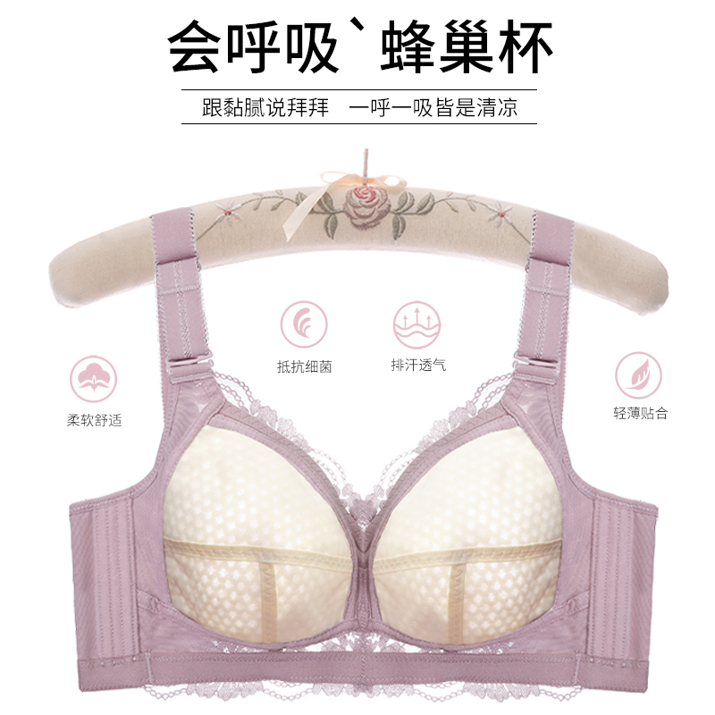 Underwear summer thin section women's big breasts show small anti-sagging breast reduction breasts without steel ring gather large size underwear cover