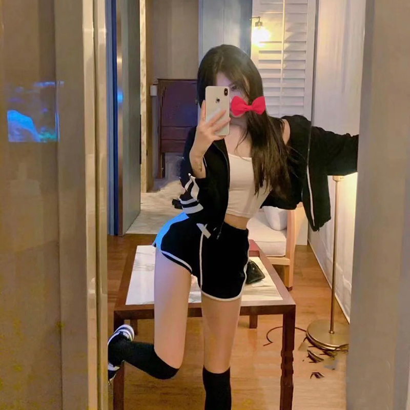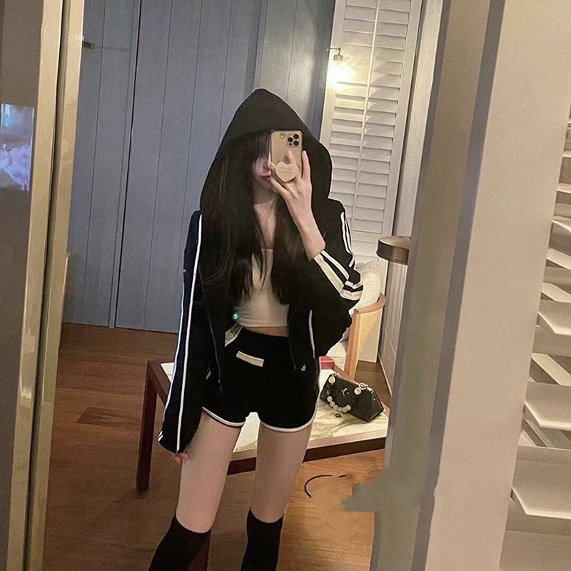 Sports suit women's summer casual tide brand hooded sweatshirt fashion hot girl camisole high waist shorts two-piece set