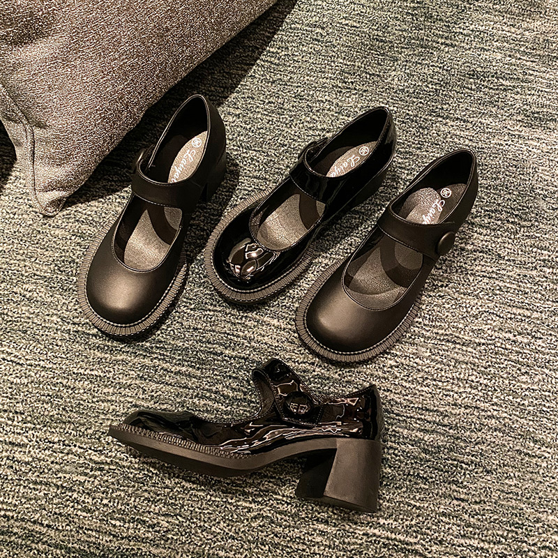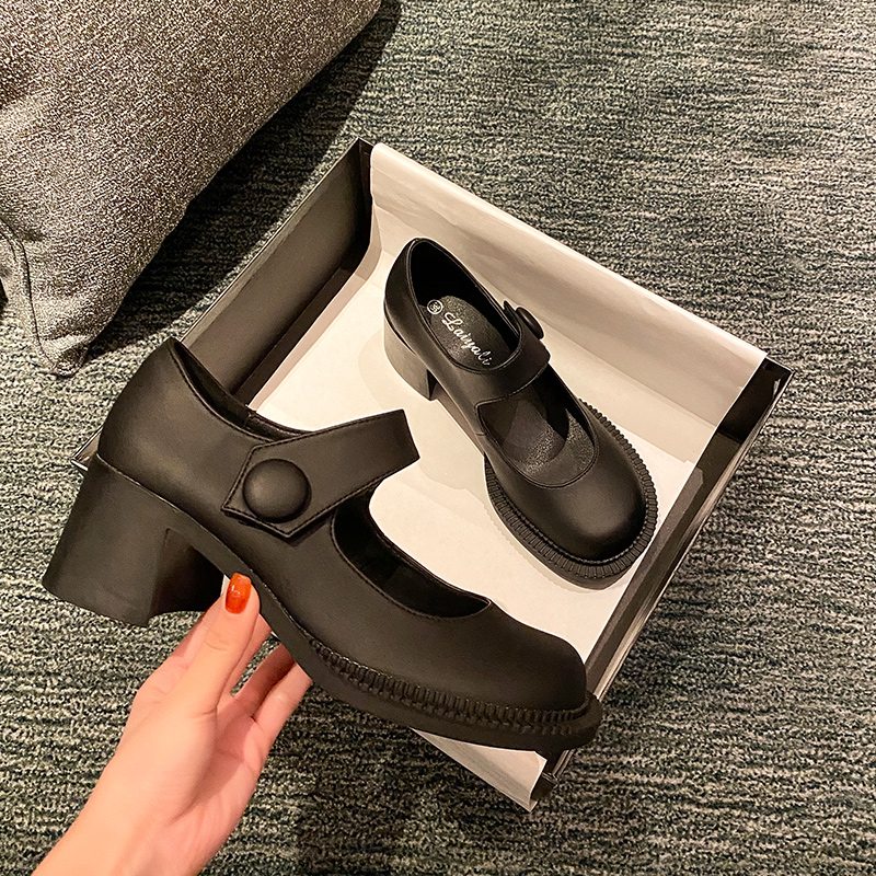 Roleita white Mary Jane shoes High heel shoes Inn wind small leather shoes Women Summer thin Jk shoes coarse heel single shoes