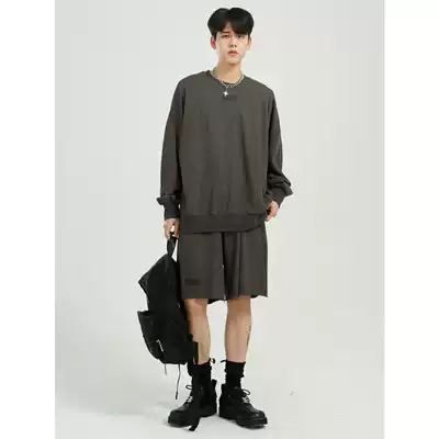 Dosho men's Japanese vintage long sleeve thick cotton T set slim loose casual five-piece pants two-piece set