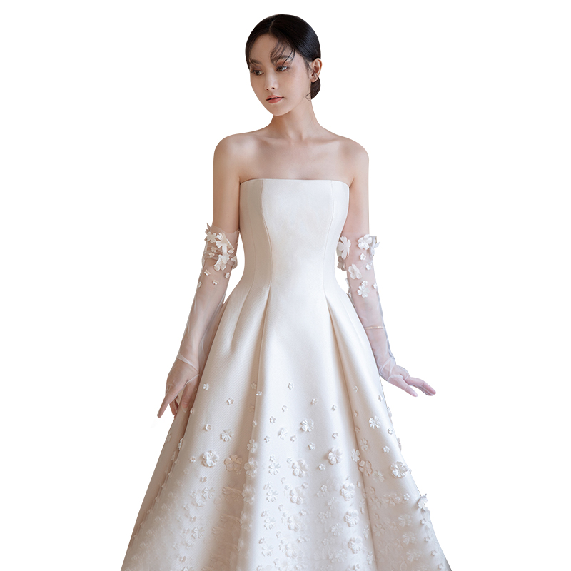Chest master wedding dress senior bridal temperament French satin simple Mori Super fairy dream luxury go out yarn tailing