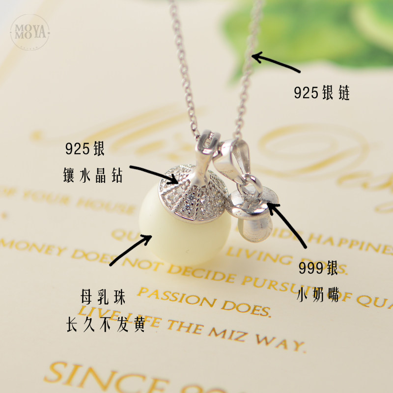 Pure silver breast milk necklace without pacifier pure silver breast milk necklace with pacifier