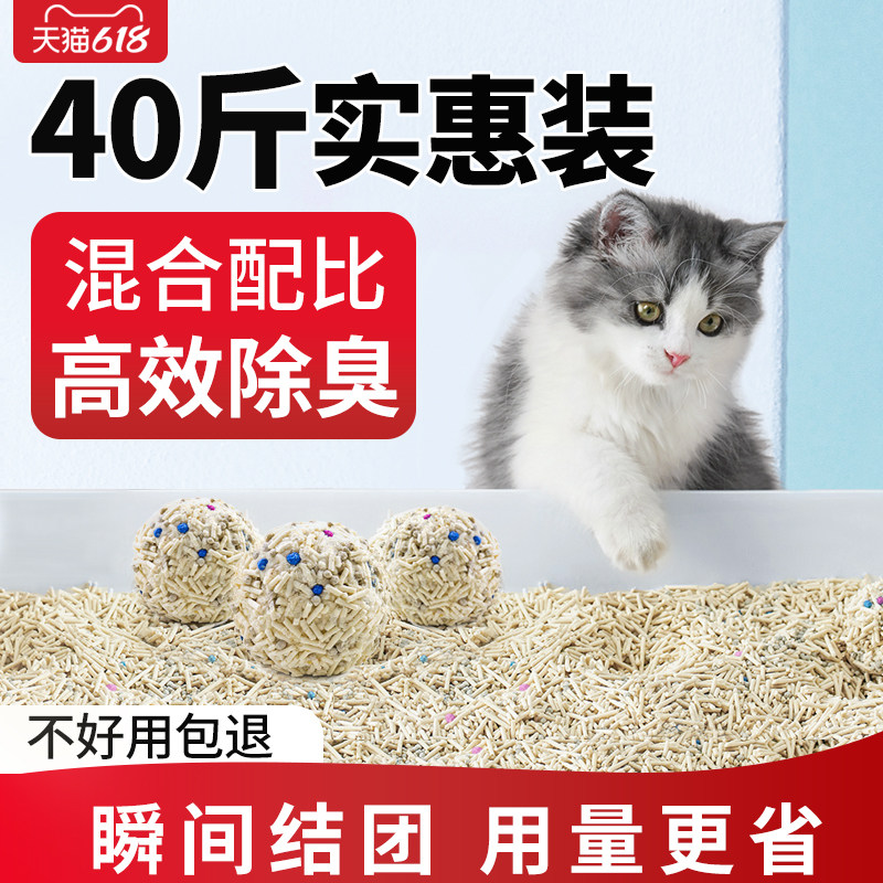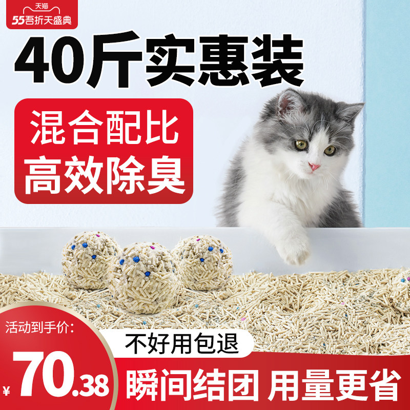 Tofu cat sand deodorant dust-free tofu sand 20 kg 40 catty mixed large package 10kg cat sand bentonite