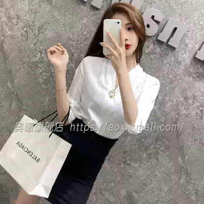 Socialite temperament overalls women's summer suit Front desk reception summer mid-sleeve V-neck shirt skirt high-end acetate satin