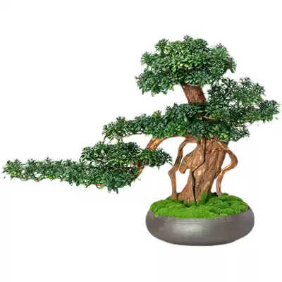 Simulation plant Welcome pine bonsai Arhat pine fake tree New Chinese decoration living room entrance green plant potted decoration